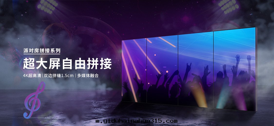 大(dà)尺寸(cùn)拼接屏,超大(dà)的(de)尺寸(cùn)以(yǐ)及(jí)自(zì)由(yóu)拼接的(de)靈活性(xìng),可(kě)組成(chéng)更大(dà)屏幕給(gěi)人(rén)震撼的(de)感(gǎn)覺,主(zhǔ)要應(yìng)用(yòng)在(zài)KTV大(dà)包(bāo)房为(wèi)主(zhǔ),也(yě)可(kě)以(yǐ)應(yìng)用(yòng)在(zài)其(qí)它(tā)领域,比如(rú):户外(wài)廣告,公(gōng)共(gòng)场所(suǒ)等